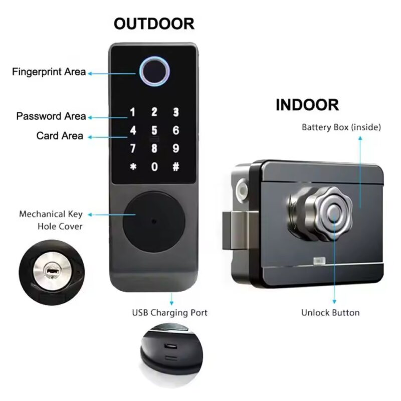 Weatherproof smart access with Tuya app control.